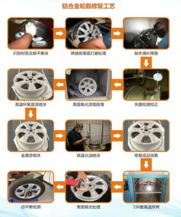 輪轂表面翻新。若只能修復輪轂形狀,而無法翻新輪轂表面,那輪轂修復也失去修復的意義。汽車鋁合金輪轂表面可以分為四大類,即:噴漆面,拋光面,數控(CNC)面與電鍍面。我司能提供處理鋁合金輪轂表面拋光,電鍍銀等技術、工藝與材料;并能處理CNC表面等問題。翻新后的輪轂表面,無論是在外觀上,硬度上都能達到OEM品質要求。