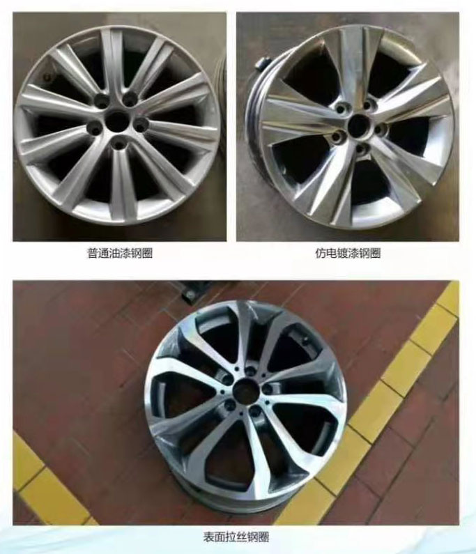 絲紋鋁合金胎鈴例如:(凱美瑞胎鈴);雙組份電鍍漆胎鈴例如:(凌志GS350);電鍍胎鈴例如:(奔馳S600、凱迪拉克CTS);鍍鉻胎鈴例如:(克萊斯勒300C)。以及普通雙組份漆胎鈴:表面擦傷、撞傷均可修復,胎鈴主體缺失可再制造(不超過胎鈴主體的2CM以內),胎鈴輕微變形可修復。